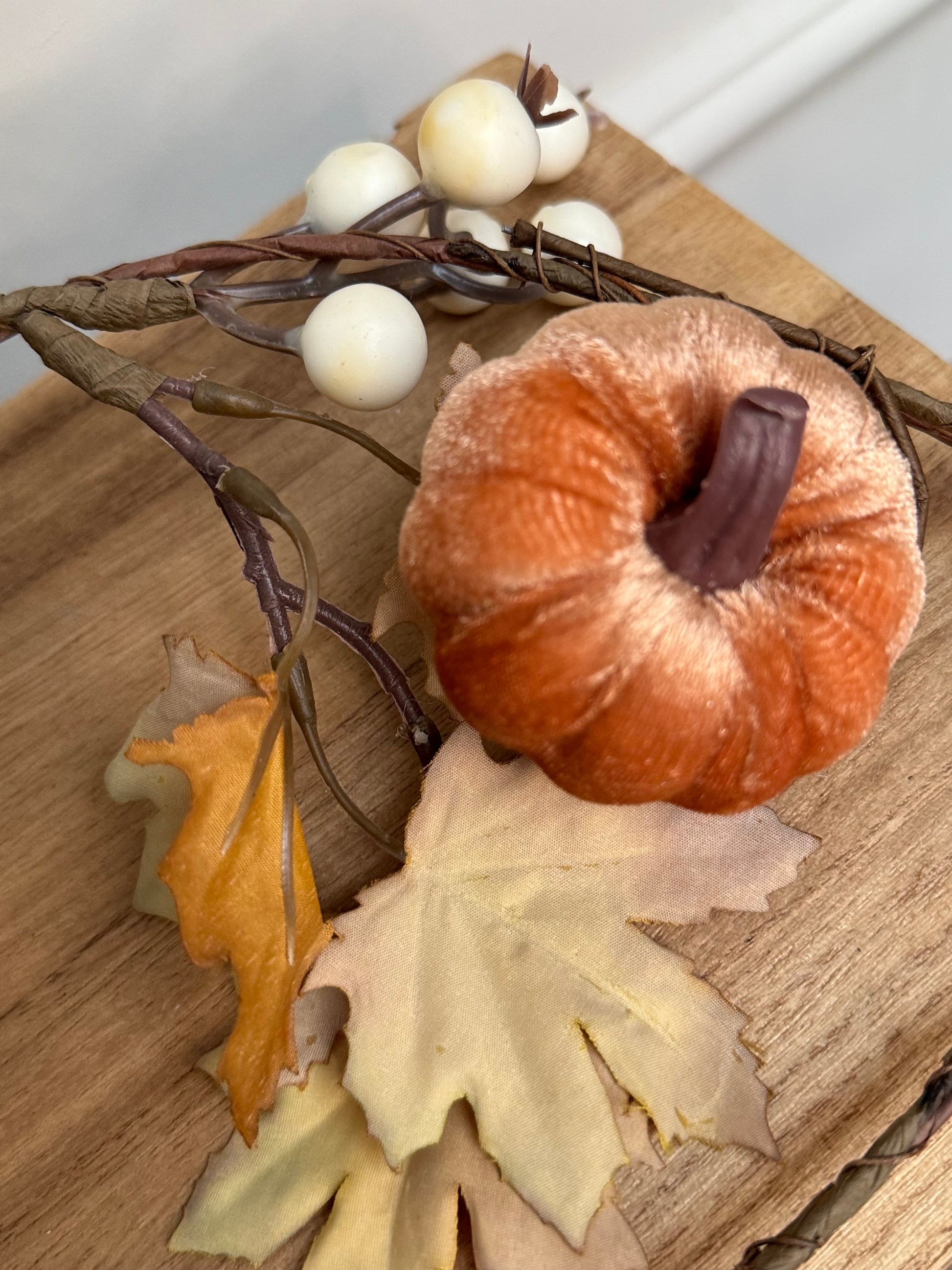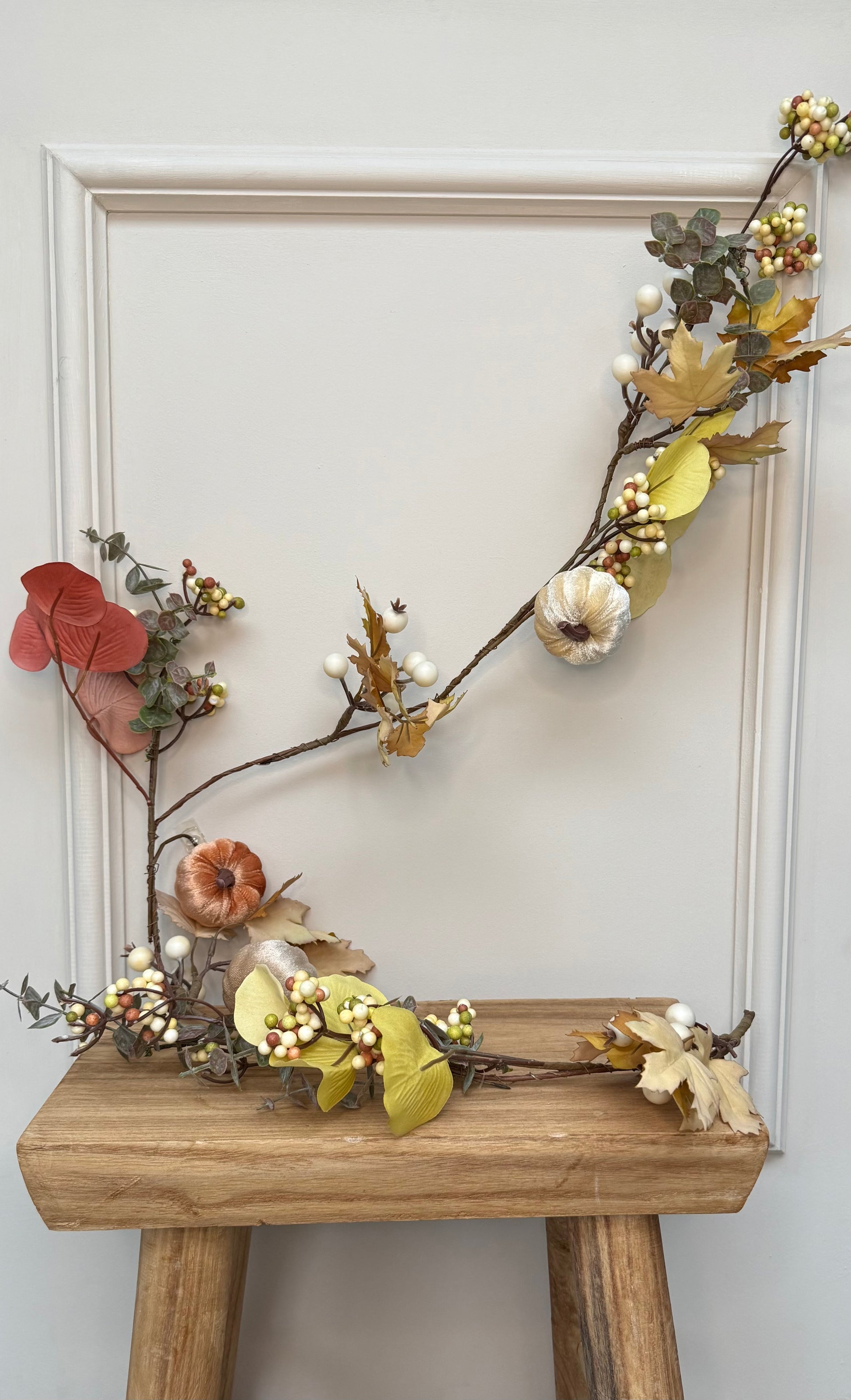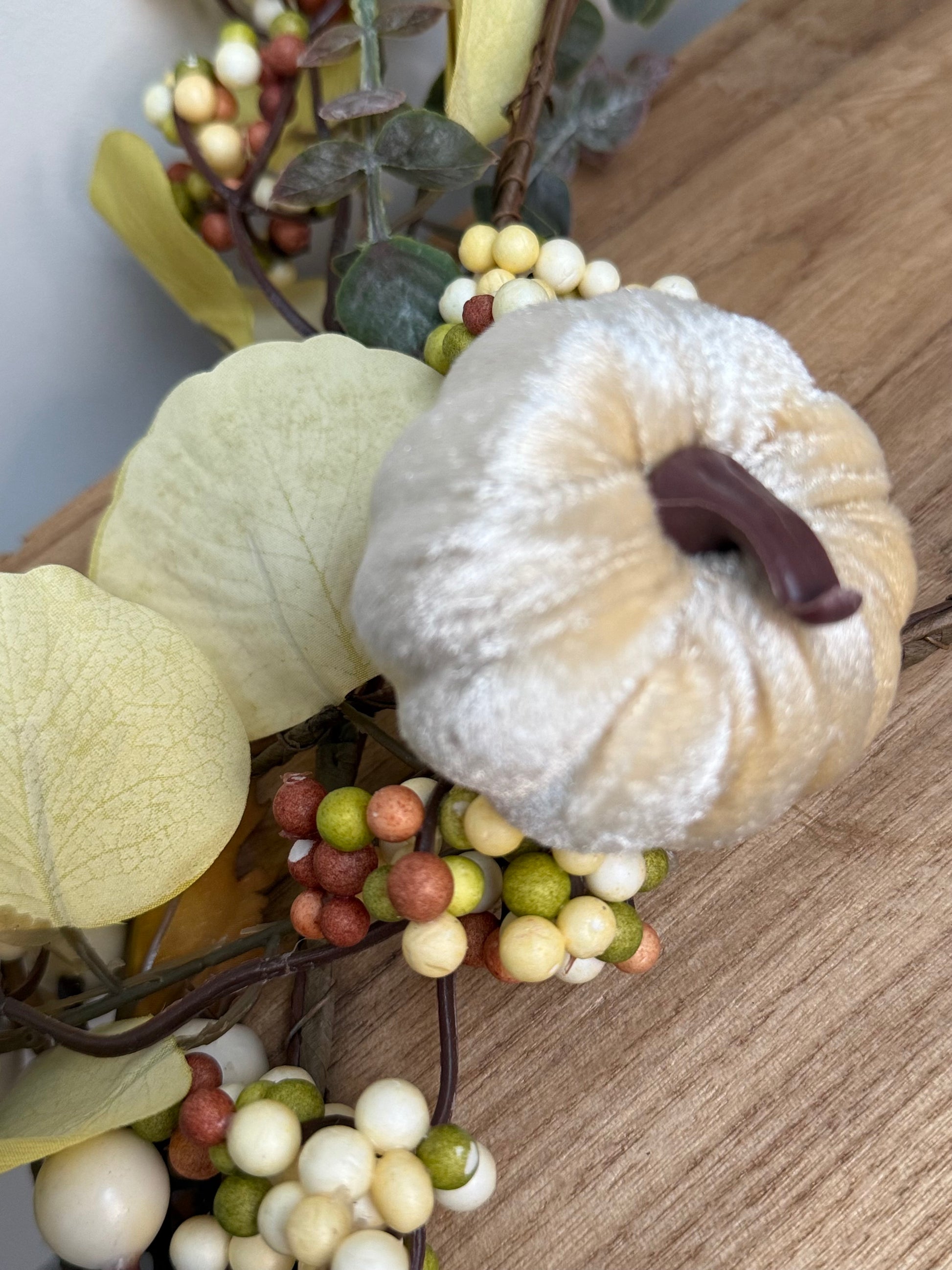 Elevate your decor this season with our Autumn Garland featuring velvet pumpkins, autumn leaves and berries. Create a stylish and cozy atmosphere with this garland, perfect for any home.